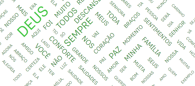 i was a data analyst at grupo morada, a company in the funeral sector that offers funeral services and products, cemetery services, and assistance plans. one of our projects was morada da memória, an online memorial with messages from family and friends. we wanted a fast way to see which words kept showing up so editors and managers could feel the tone of the stories.